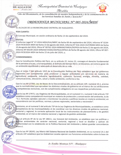 APROBACIÓN DE LA POLITICA AMBIENTAL CLIMÁTICA LOCAL (PACL) DE LA PROVINCIA DE HUALGAYOC - BAMBAMARCA 2024