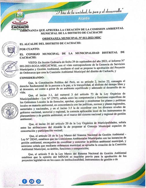 CREACIÓN DE LA COMISION AMBIENTAL MUNICIPAL (CAM) DEL DISTRITO DE CACHACHI - CAJABAMBA
