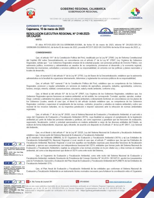 Resolución Ejecutiva Regional N° D148-2023-GR.CAJ/GR