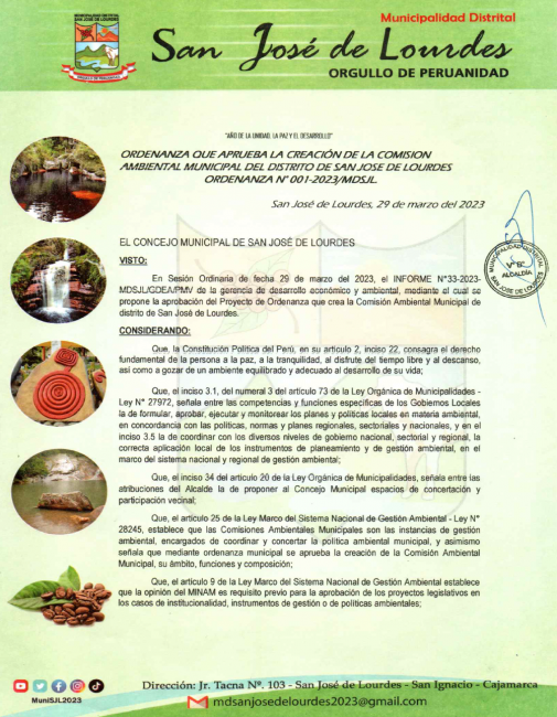 CREACIÓN DE LA COMISION AMBIENTAL MUNICIPAL (CAM) DEL DISTRITO DE SAN JOSE DE LOURDES - SAN IGNACIO