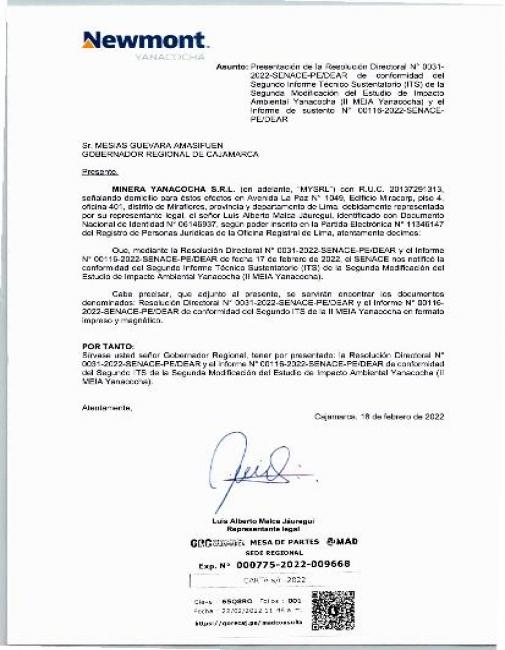 “Segundo Informe Técnico Sustentatorio de la Segunda Modificación del Estudio de Impacto Ambiental Yanacocha”