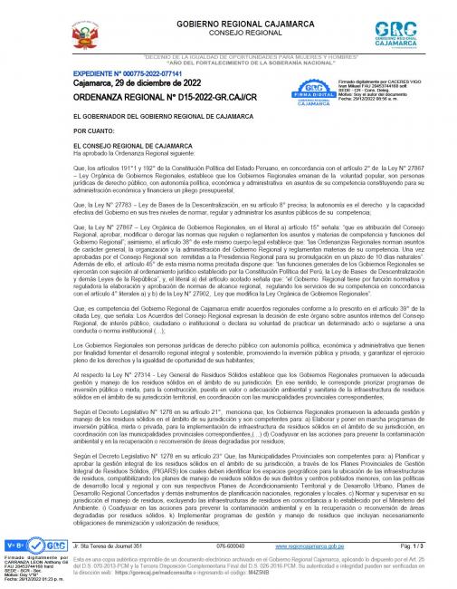 Ordenanza Regional N° D1-2022-GR.CAJ-CR
