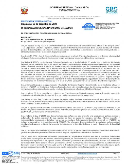 Ordenanza Regional N° D16-2022-GR.CAJ/CR