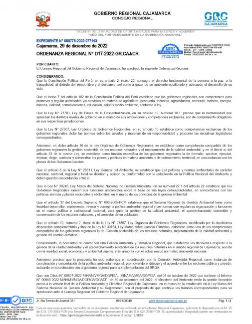 Ordenanza Regional N° D17-2022-GR.CAJ/CR