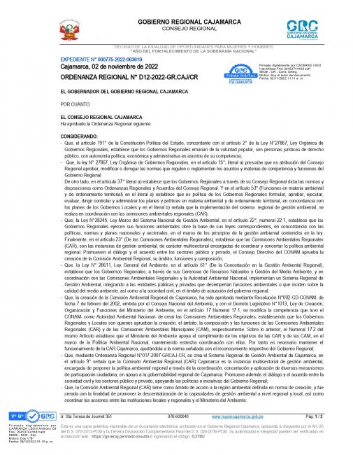 Ordenanza Regional N° D12-2022-GR.CAJ/CR