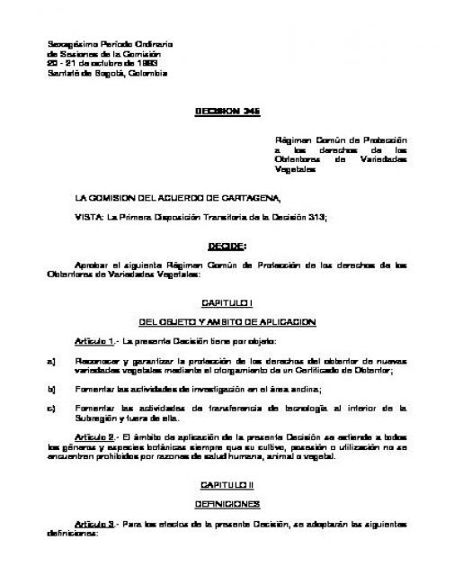 Acuerdo de Cartagena sobre Protección a los Derechos de los Obtentores de Variedades Vegetales