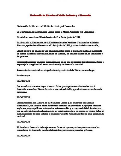 Declaración de Rio sobre el Medio Ambiente y el Desarrollo