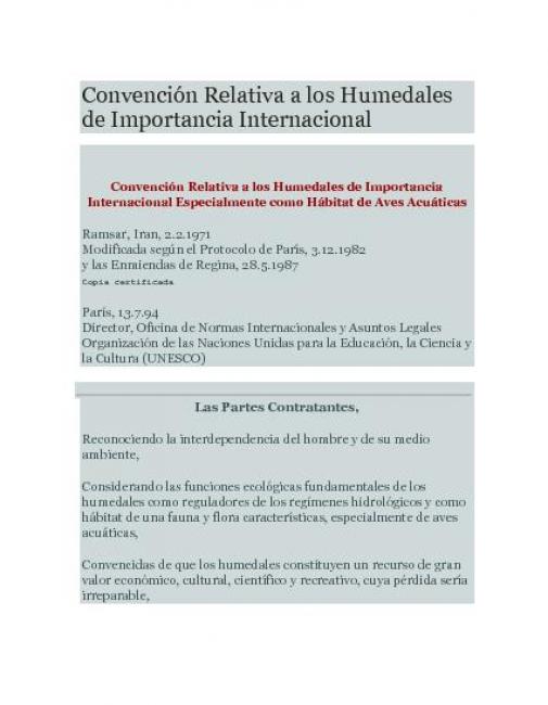 Convención Relativa a los Humedales de Importancia Internacional RAMSAR