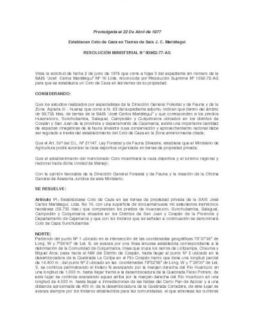 Resolución Ministerial N° 00462-77-AG, Coto de Caza Sunchubamba