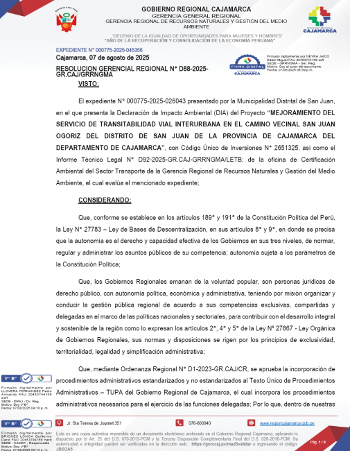 Resolución Gerencial Regional N° D88-2025-GR.CAJ-GRRNGMA