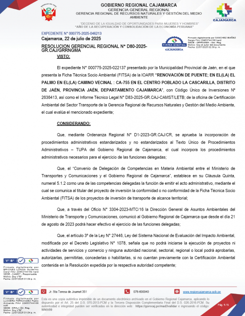 Resolución Gerencial Regional N° D80-2025-GR.CAJ-GRRNGMA