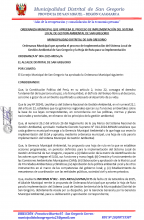 Ordenanza Municipal Nro. 004-2025-MDSG-A.- ORDENANZA MUNICIPAL QUE APRUEBA EL PROCESO DE IMPLEMENTACIÓN DEL SISTEMA REGIONAL DE GESTION AMBIENTAL DEL DISTRITO DE SAN GREGORIO -SAN MIGUEL Y LA HOJA DE RUTA