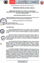 Ordenanza Municipal Nro. 102-2025 PACCHA.- ORDENANZA MUNICIPAL QUE APRUEBA EL PROCESO DE IMPLEMENTACIÓN DEL SISTEMA REGIONAL DE GESTION AMBIENTAL DEL DISTRITO DE LA PACCHA -CHOTA Y LA HOJA DE RUTA