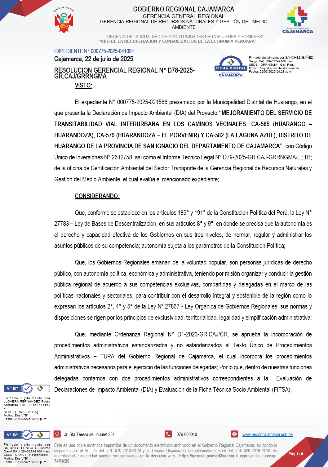 "MEJORAMIENTO DEL SERVICIO DE TRANSITABILIDAD VIAL INTERURBANA EN LOS CAMINOS VECINALES: CA-585 (HUARANGO-HUARANDOZA), CA-579 (HUARANDOZA-EL PORVENIR) Y CA-582 (LA LAGUNA AZUL) DISTRITO DE HUARANGO DE LA PROVINCIA DE SAN IGNACIO DEL DEPARTAMENTO DE CAJAMARCA"