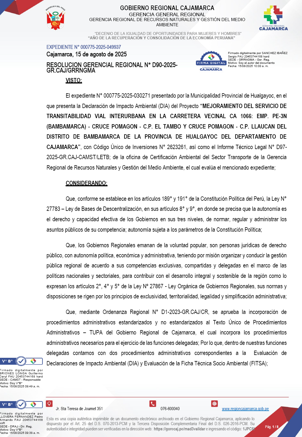 "MEJORAMIENTO DEL SERVICIO DE TRANSITABILIDAD VIAL INTERURBANA EN LA CARRETERA VECINAL CA 1066: EMP.PE-3N (BAMBAMARCA)-CRUCE POMAGON-C.P EL TAMBO Y CRUCE POMAGON-C.P. LLAUCAN DEL DISTRITO DE BAMBAMARCA DE LA PROVINCIA DE HUALGAYOC DEL DEPARTAMENTO DE CAJAMARCA"
