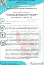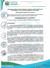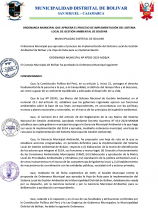ORDENANZA MUNICIPAL QUE APRUEBA EL PROCESO DE IMPLEMENTACIÓN DEL SISTEMA REGIONAL DE GESTION AMBIENTAL DE LA PROVINCIA DE SAN PABLO Y LA HOJA DE RUTA