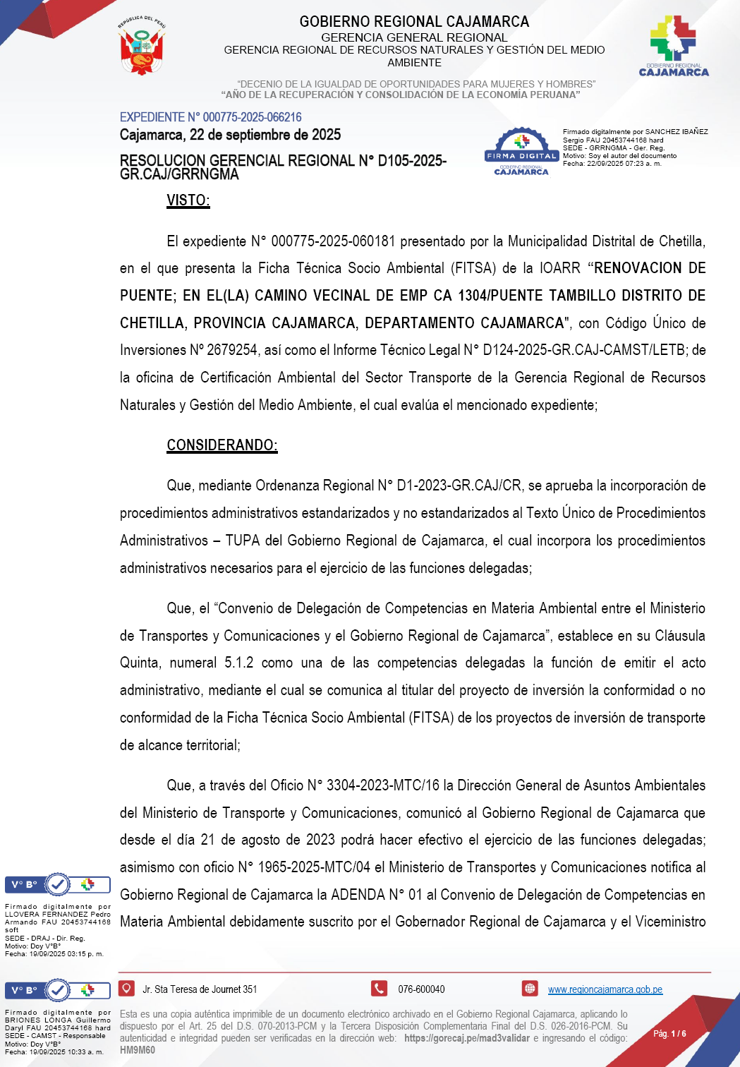 "RENOVACION DE PUENTE: EN EL(LA) CAMINO VECINAL DE EMP CA 1304/PUENTE TAMBILLO DISTRITO DE CHETILLA, PROVINCIA CAJAMARCA, DEPARTAMENTO CAJAMARCA"